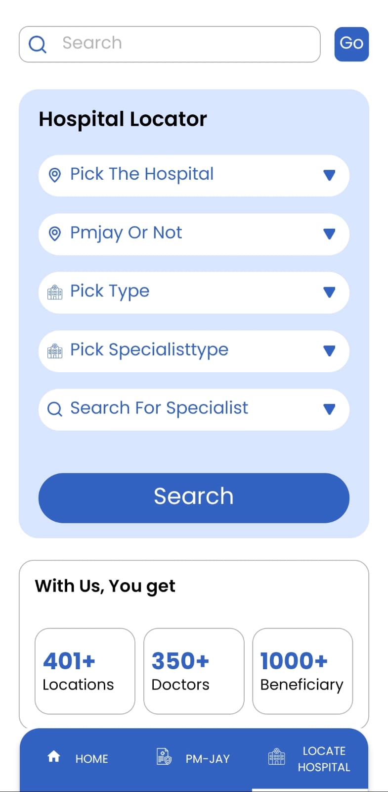 Discover nearby hospitals effortlessly with Ayushman Arogya Mandir's intuitive mobile app. Our simple interface ensures easy navigation, helping users locate healthcare facilities seamlessly. Stay informed and access healthcare with convenience at your fingertips.