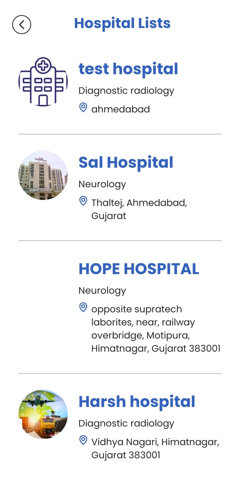 Easily explore hospitals for specific specialties, multispecialty care, or comprehensive services with our app's feature